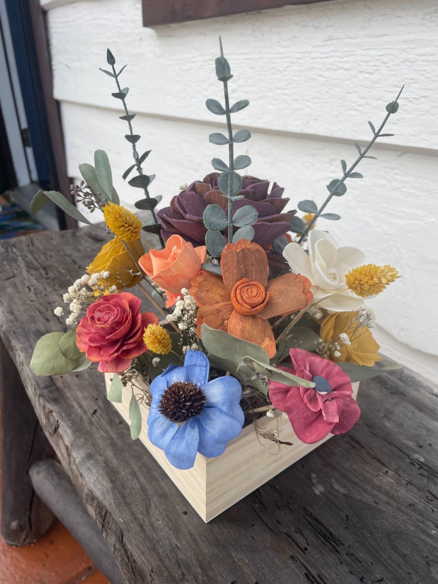 Spring is on its way and the flowers are in bloom! Patchwork is heading back to La Mesa Wine Works for a NEW craft! Everyone loves flowers, but hate when they die! In this workshop we will create a wooden box with wooden flowers! Guests will have the option of painting there own unfinished wood flowers or using pre colored flowers to create there arrangements. Arrangements will be finished off with a variety of dried flowers. There is a wide variety of colors and flower types to choose from, making every arrangement very unique!