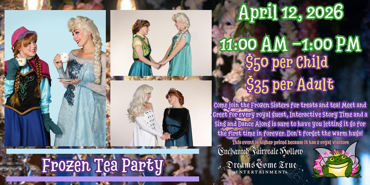 - **Event Description**: Come join the Frozen Sisters for treats and tea! Meet and Greet for every royal guest, Interactive Storytime and a Sing and Dance Along!About this EventCome join the Frozen Sisters for treats and tea! Meet and Greet for every royal guest, Interactive Story Time and a Sing and Dance Along is sure to have you letting it go for the first time in forever! And don't forget the warm hugs!This is event is RSVP only. Get your tickets early because we do book up quickly! Every child and adult attending are required to purchase tickets in advance. Each ticket includes entertainment and meals and is:$50 per Child (ages 2-12) with $30 due now at booking and the remaining $20 is due at the venue the day of the event when you check in.$35 per Adult with $15 due now to reserve your ticket and the remaining $20 due at the venue the day of the event when you check in***This event is slightly more expensive than our one character events because there are two characters visiting***You are required to pay the full ticket price for each person attending even if you do not intend to eat the refreshments, it is a package deal for the dining experience. If you have friends attending with you please purchase a ticket for each person in your party then let us know who is in your party so we can ensure you are seated together.Every child and adult are required to RSVP by buying a ticket to the event. The remaining balance of $20 per person for the tea party is due to the venue upon check in the day of the event. Additional children and adults require a new ticket each and would also owe the additional $20 per person the the venue the date of the event.Doors open at 11:00 AM. The special guest will arrive approximately 1 Hour into your seating to give you time to enjoy your meal. Please ensure you are on time as the special guests will start the show shortly after their arrival, so if you are delayed, you may miss part of the show, or will not have enough time to enjoy your refreshments.Photos are taken by our character attendant at every event and will eventually be posted on our website for your viewing pleasure and to purchase if you would like. You are more than welcome to take as many photos of your own as you wish, as Dreams Come True Entertainment takes photos primarily for quality control and our archives. If you do not wish for your child to be photographed, just let our character attendant know.Keep in mind there is limited seating for each event, so buy your tickets early to reserve your seat for the magic!Immerse yourself in fun and fantasy at Lakeland's one of a kind event destination. Enchanted Fairytale Hollow is a whimsical wonderland of fun and magic. Home to character entertainment (provided by Dreams Come True Entertainment) and unique events for all ages. Join us for one of our public events each week, or host your own event inside of our enchanting Hollow to create unforgettable memories to add to your very own fairytale!We host many fun and unique events open to the community almost every week and are available for private parties and events. Make your next event UNFROGETTABLE!Conveniently located in Downtown Lakeland, right in the heart of Central Florida, minutes from Tampa, Orlando and more.Enchanted Fairytale Hollow is located on E Lemon Street between the blocks of Waterloo Avenue &amp; S Lake Avenue. We are located near Lakeland Community Theater, Barnett Park/Hollis Gardens and Texas Cattle Company.Parking is available on site. Our main parking lot is located next to the building and we have overflow parking in the back of the building. There are also additional spaces available in the Lakeland Community Theater/Barnett Park lot 1/2 block away.Tickets are non-refundable because there are only a limited number available, people are turned away based on the number sold, so we apologize, but no refunds can be offered for purchased tickets.If illness or unforeseen circumstances arise, please contact Dreams Come True Entertainment to reschedule. Please contact us via email ASAP as we cannot transfer tickets less than 48 hours before the event starts. Cancellations made within less than 48 hours before the event starts forfeit the RSVP price due to refreshments already being purchased so we are unable to process a refund.dreamscometrueentertainment@gmail.com