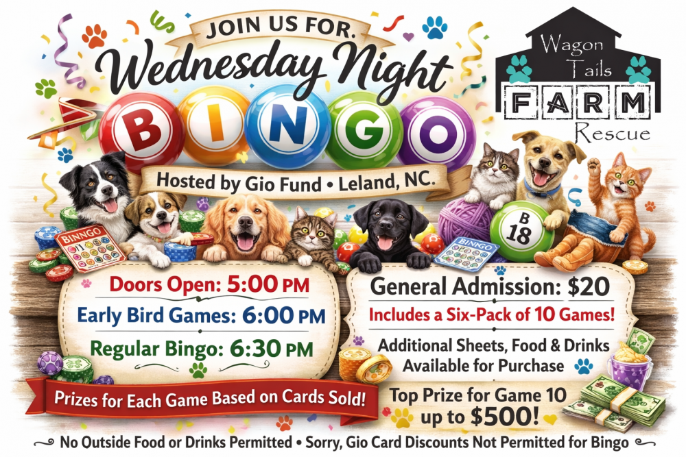 Tickets for BINGO for WTFRescue can be booked here.