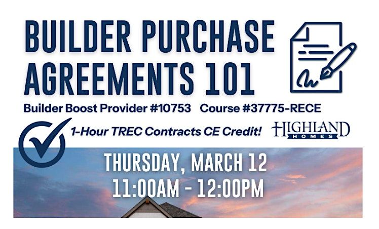 Tickets for REALTORS! Builder Purchase Agreements CE Class can be booked here.