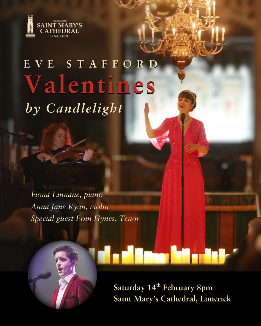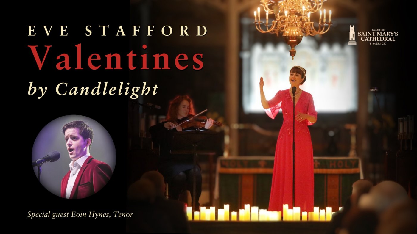 Following the phenomenal success of her sold-out concert “Lovebirds” in 2025, Limerick’s own soprano Eve Stafford returns to the magnificent Saint Mary’s Cathedral for a truly romantic Valentine’s concert.