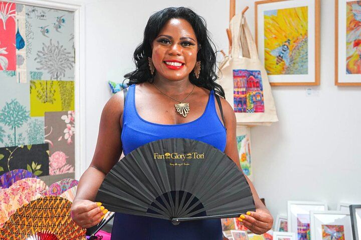 This unique experience led by the Tour Guide and Fan Making Teacher: Victoria Ajoku was absolutely excellent! Victoria is so passionate and fun! Within the day, you start with a lovely walk around the Greenwich Peninsula & Design District, with Victoria who reveals fascinating information about the history of the area, including the public contemporary murals/artworks that appear along the way. During the walking tour, Victoria encouraged us feel inspired by the public sculptures we saw on each stop, and to think of the Peninsula area as 'our canvas to create on' (we learnt that in many ways, this was how the architects who had built on the Peninsula, have also related this space to their craftwork/s). After a splendid lunch (included on the tour), from food vendors we got to choose from, we then made our way to a craft making venue to get creative via a 'hands on' workshop. I valued hearing about the history of fans and discovering how the collaboration of Greenwich Royal Tours and Victoria is a major and positive movement, ensuring the practice of fan making progress forward, as the art of fan making is a critically endangered craft in the UK. I throughly enjoyed designing my own hand-fan as a bespoke, inspirational souvenir of the area and tour experience as a whole. So many colourful memories, I greatly recommend this tour.
