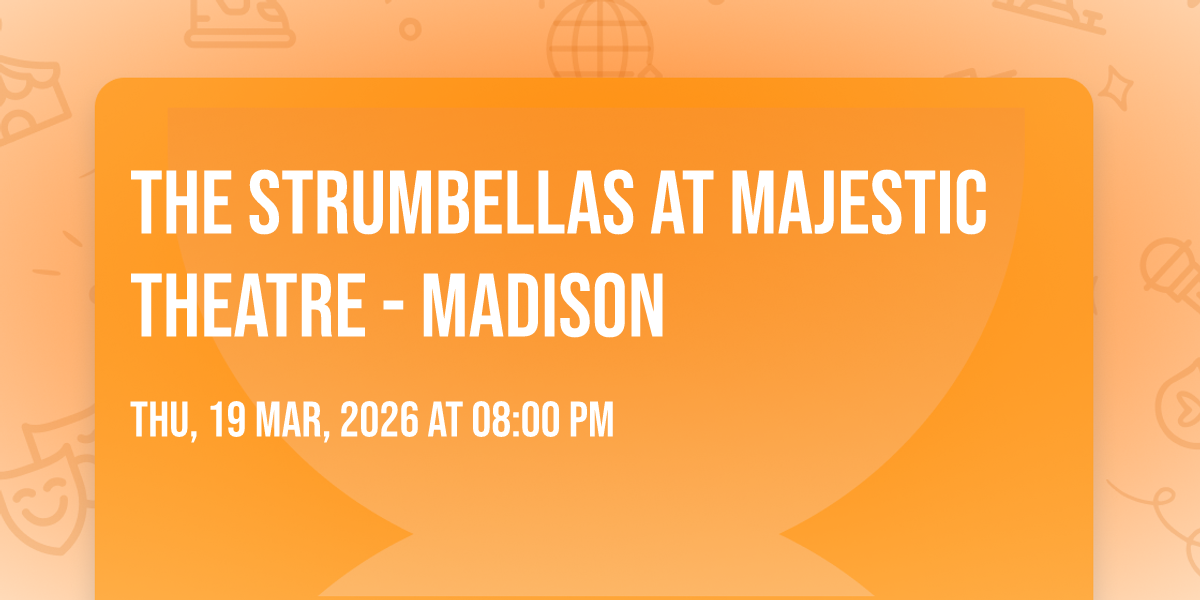 - **Event Description**: ? Welcome to The Strumbellas at Majestic Theatre - Madison, where dreams come alive and possibilities are endless! ?️ Join us at Majestic Theatre - Madison in the heart of Madison, WI for an event that defies expectations. ? On March 19th, 2026 at 08:00 PM, be part of something truly extraordinary as we bring together innovation, entertainment, and pure magic. ✨ Every aspect has been carefully designed to ensure an unforgettable experience for all our guests. Whether you're seeking adventure, inspiration, or simply a break from the ordinary, this event promises to deliver beyond your wildest dreams.  ? Prepare for a journey into the extraordinary!