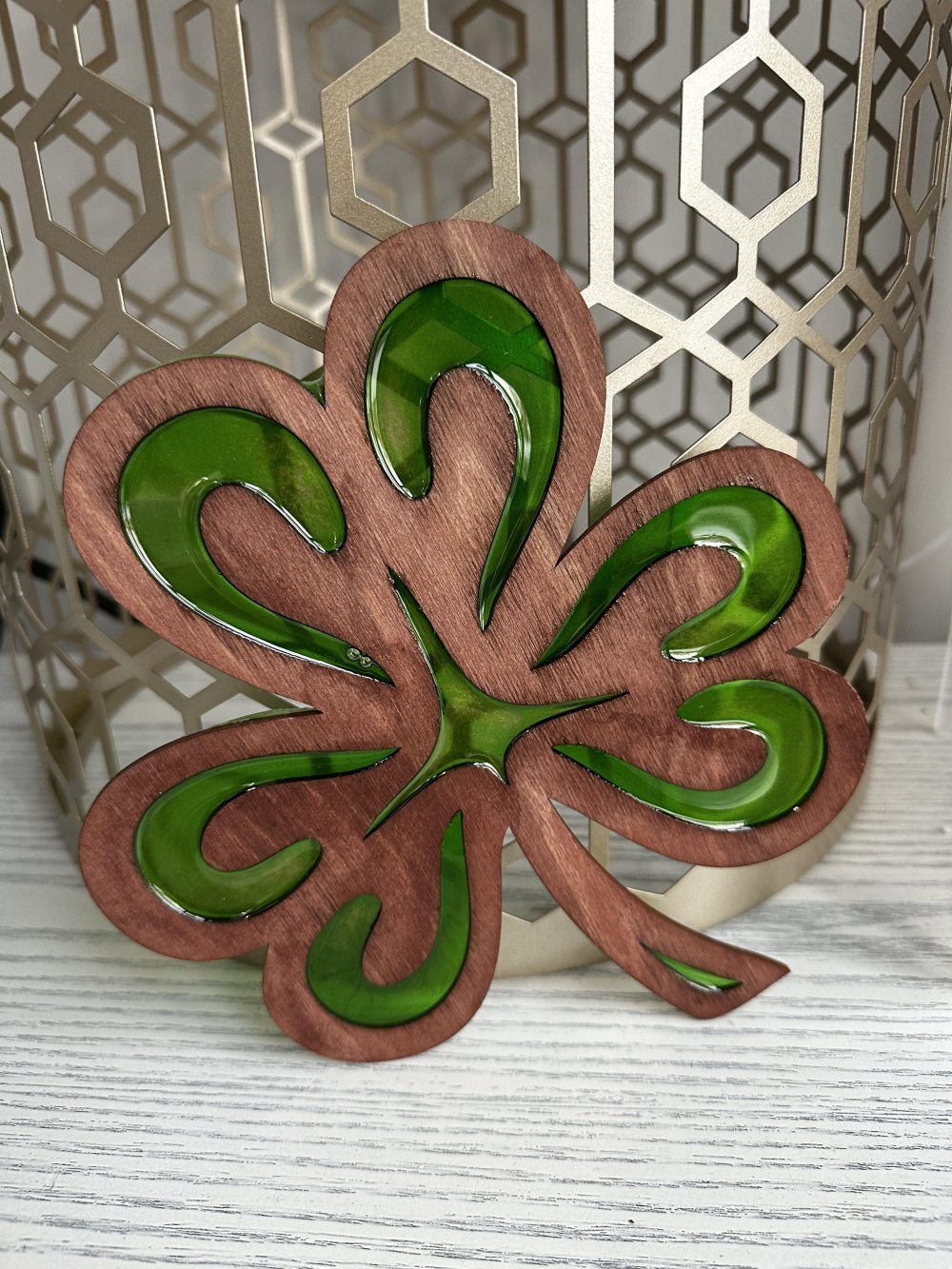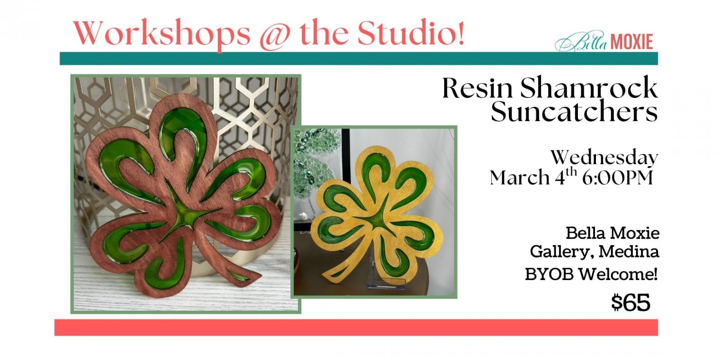 Join us for a lovely evening creating your very own resin shamrock sun catcher and learn the art of dying resin, add in embellishments of crushed glass if you'd like!