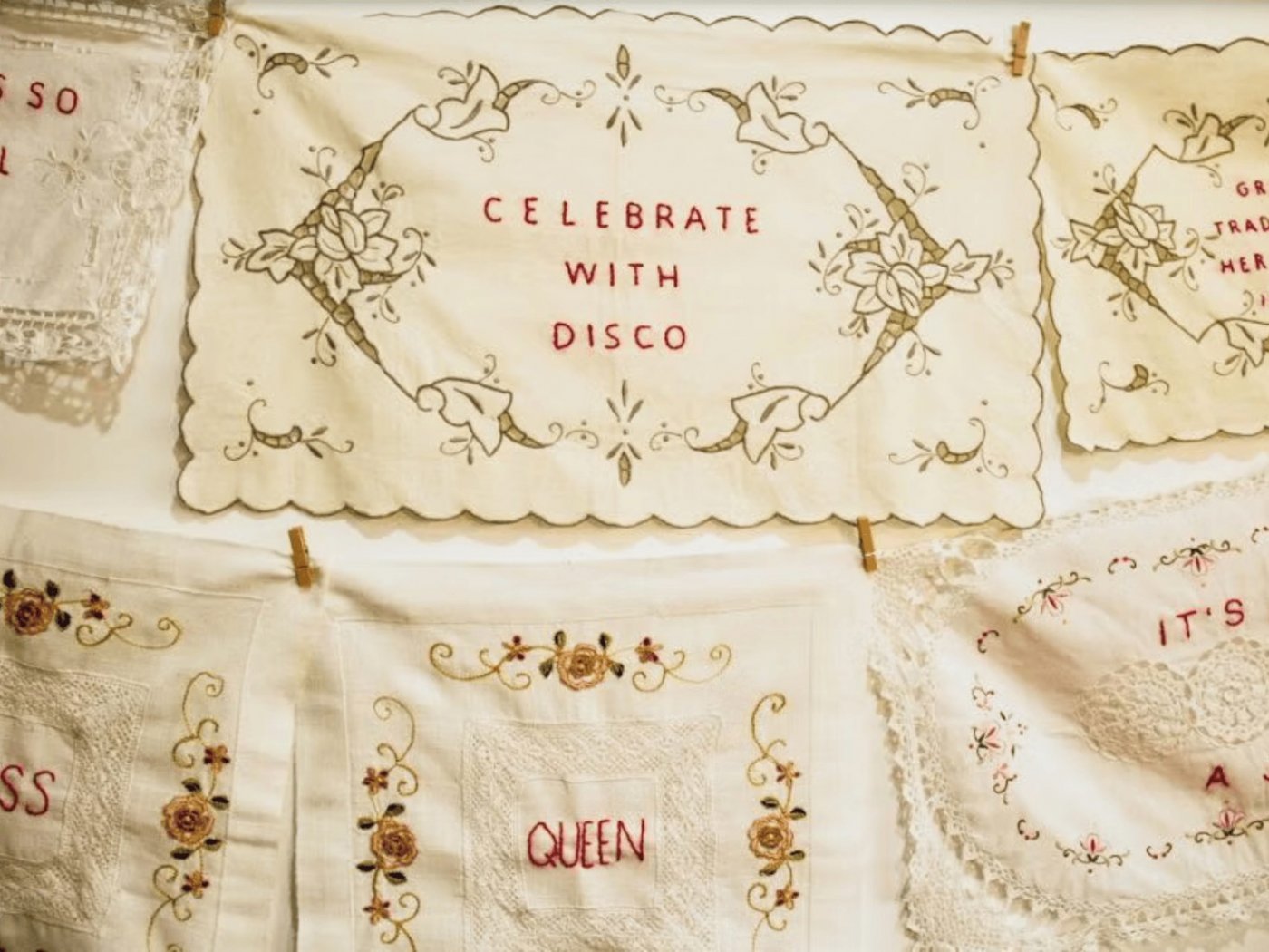 In her series of works titled The Dowry Project, Sonia responded to the traditional custom of the dowry, and women’s craft as a rite of passage historically tied to marriage, motherhood and domestic life. Sonia used her own Greek dowry in this project, and through a feminist lens, embroidered new words into inherited textiles to challenge gendered language and long-standing stereotypes.