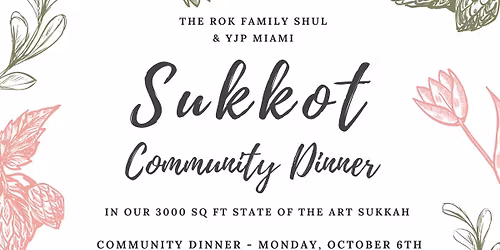 Join The Rok Family Shul & YJP Miami for a community Sukkot Dinner Under the Stars in the biggest rooftop sukkah in Miami. Monday, October 6th The Cove Rooftop Sukkah at The Rok Family Shul 35 SE 9th Street Miami, FL 33131 7:00pm – Friday Night Ser... Read More