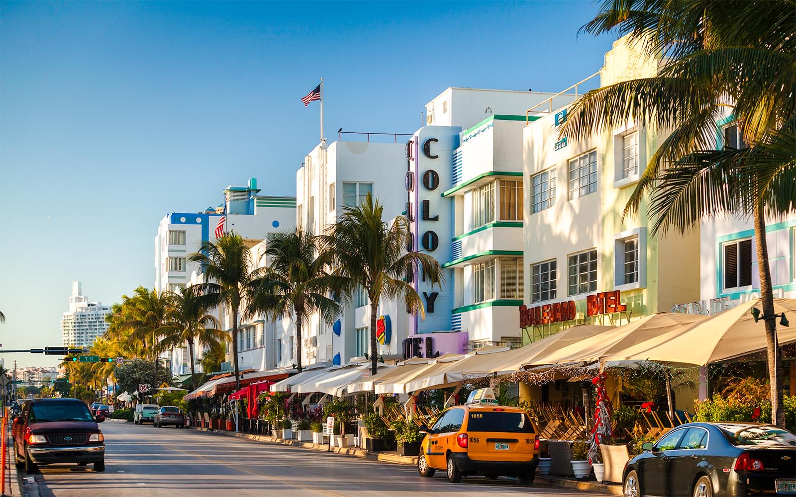 Drive past Art Deco buildings and palm-lined streets.