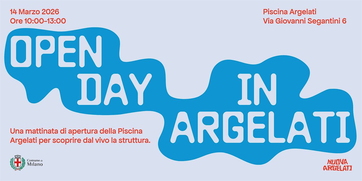 - **Event Description**: Una mattinata di apertura della Piscina Argelati per scoprire da vicino la struttura e conoscere dal vivo il luogo al centro del percorso.About this EventOPEN DAY IN ARGELATI fa parte del percorso "Immaginiamo insieme il futuro di Piscina Argelati", pensato per raccogliere idee e spunti dalla cittadinanza utili ad indirizzare il Documento di Indirizzo alla Progettazione (DIP) e il futuro concorso di progettazione del Centro Argelati.I posti saranno limitati, sia per le condizioni attuali dell’impianto sia per garantire un flusso ordinato delle visite. Per questo motivo sono previsti tre slot orari durante la mattina del 7 marzo:10:00 - 11:0011:00 - 12:0012:00 - 13:00Durante la visita si potrà:conoscere direttamente l’oggetto di questo percorso;incontrare e fare domande ad esperti dell’area.Vi aspettiamo.Agenda?: 10:00 AM - 11:00 AM Slot 1?: 11:00 AM - 12:00 PMSlot 2?: 12:00 PM - 01:00 PMSlot 3