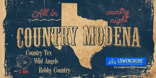 - Modena Country, serata al Lowengrube is happening on Sat 31 Jan 2026 from 9:00 PM onwards at Löwengrube Modena (Modena)