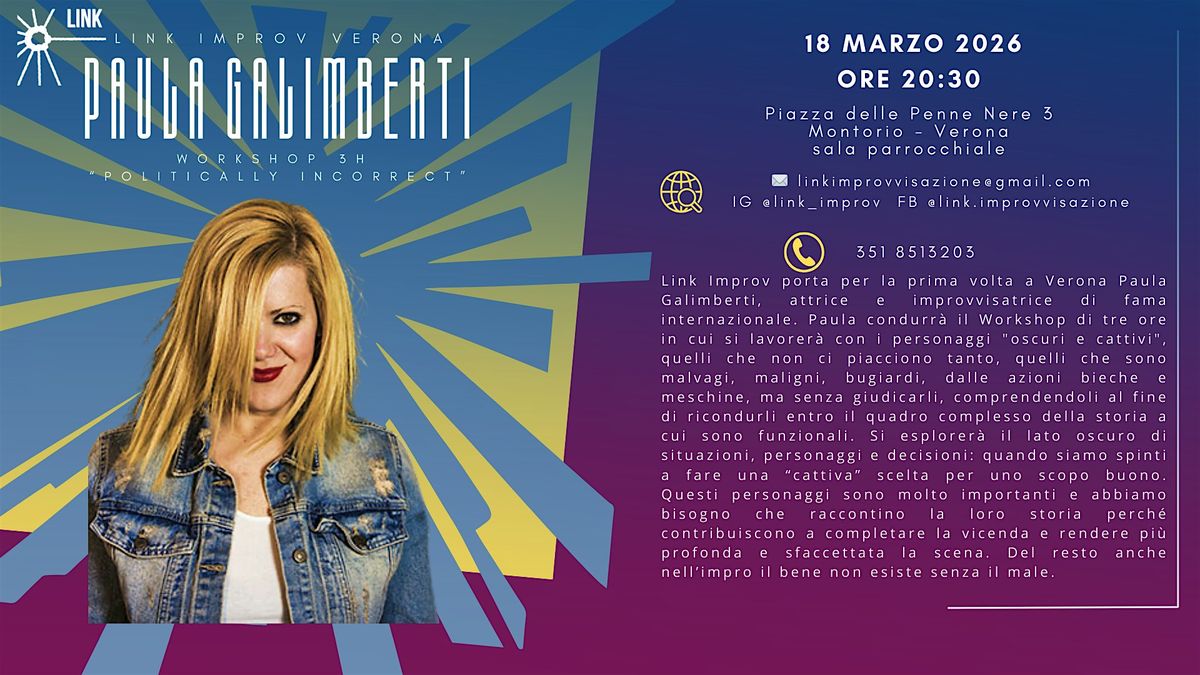Tickets for Improvvisazione teatrale Workshop Paula Galimberti “Politically Incorrect” can be booked here.