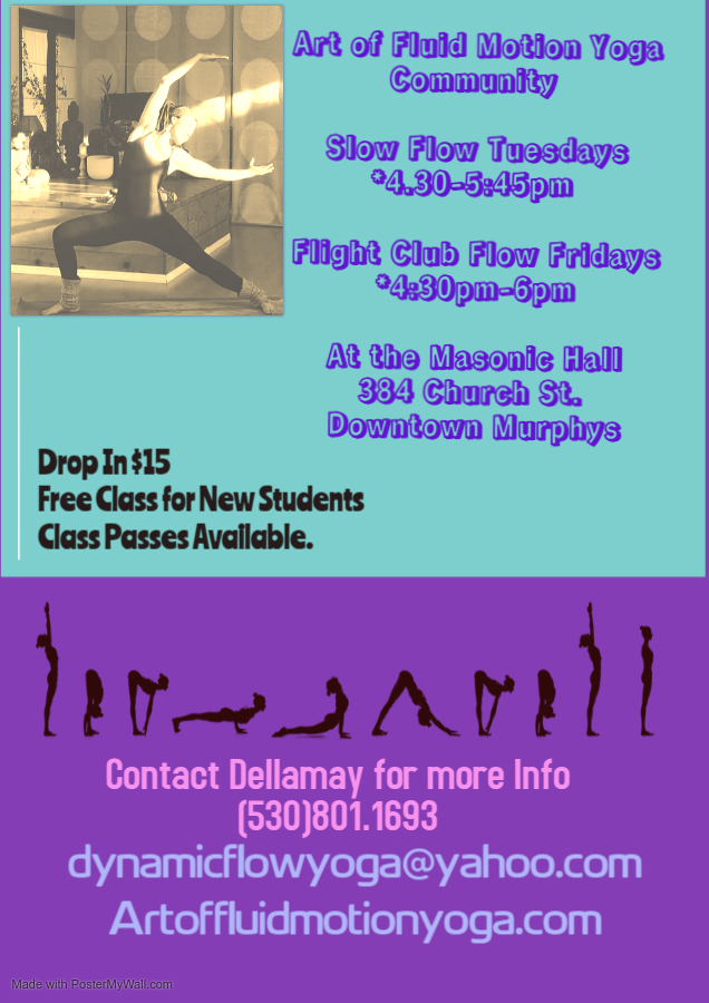 All classes are held at the Masonic Hall located at 384 Church st. In downtown Murphys