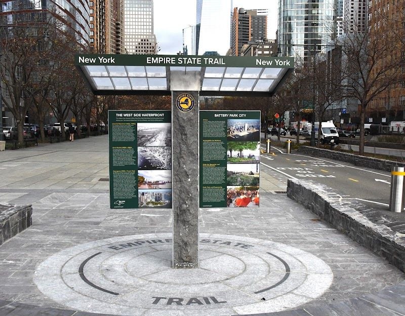 The Empire State Trail - Battery Park Trailhead offers wheelchair-accessible entrances and is family-friendly with easy restroom access and nearby parking facilities. Visitors can enjoy a leisurely biking experience with convenient amenities along the route.