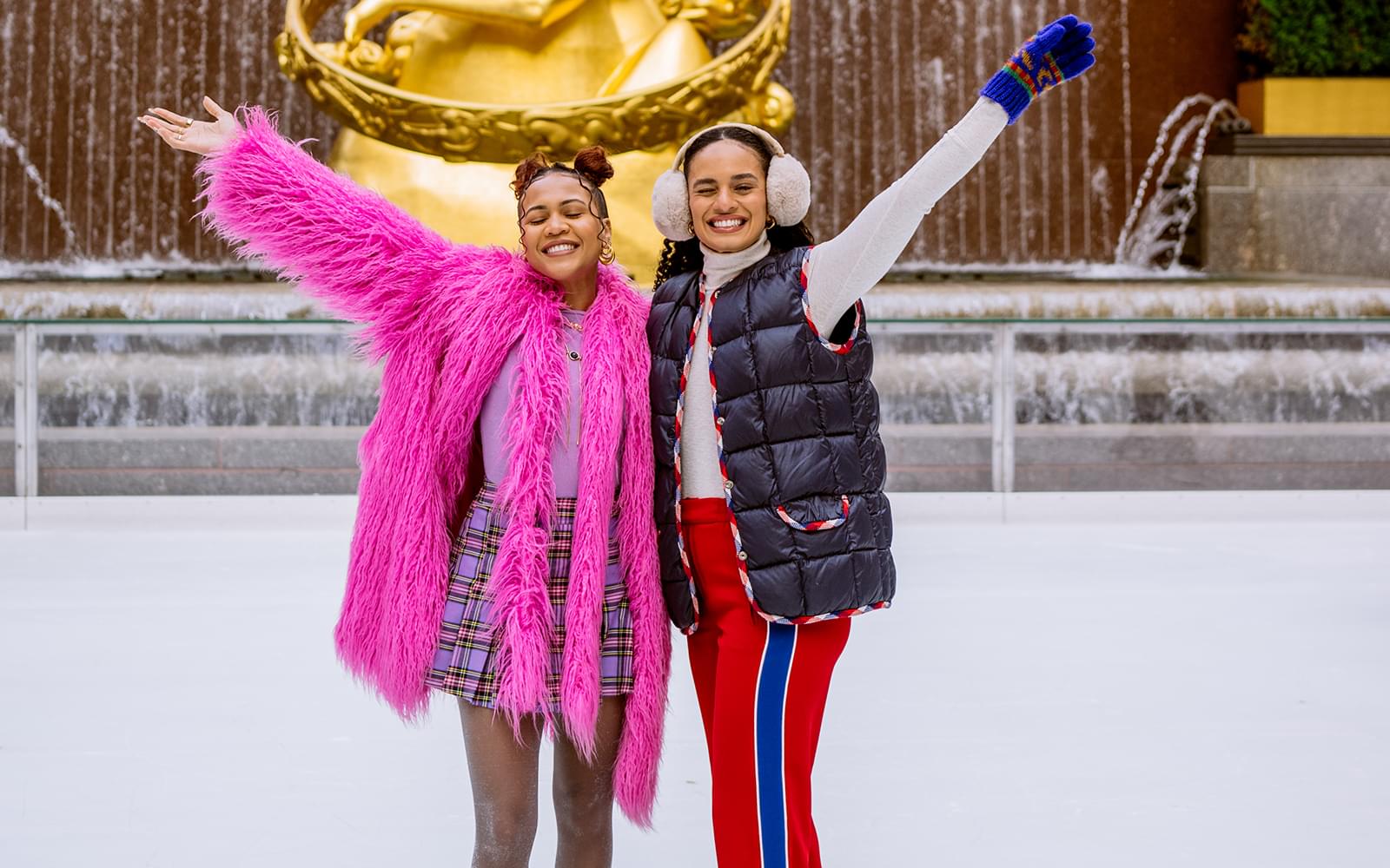 Iconic setting: Skate against the backdrop of the Rockefeller Center’s towering Christmas tree (seasonal) and urban architecture.
