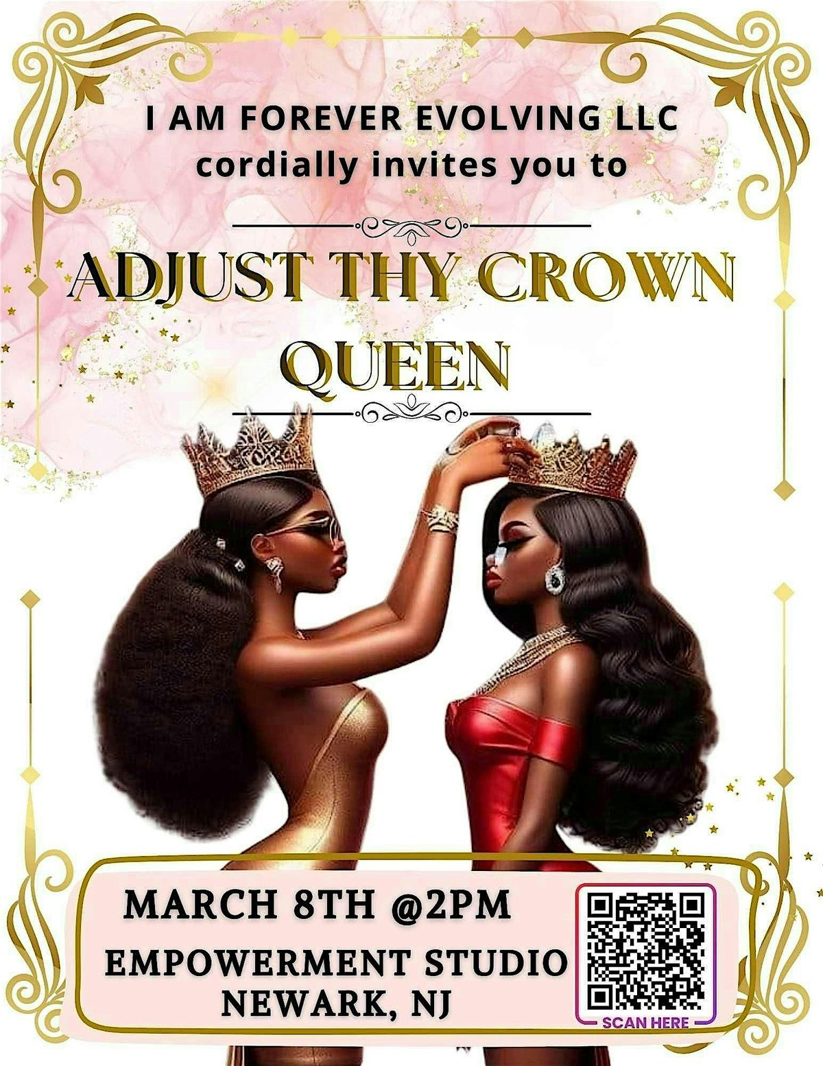 - **Event Description**: Get ready to slay the day at the ultimate women's empowerment summit, where queens come together to uplift and inspire each other!About this EventWelcome to the Annual Adjust Thy Crown Queen: A Women's Empowerment Summit at the Empowerment Studio on March 8, 2026 at 2:00 PM (Eastern Time) for a day of celeberation, support and growth on International Women's Day!Join us for an inspiring day filled with empowering discussions and networking opportunities. This event is all about celebrating the strength and resilience of women from all walks of life. Come ready to connect, learn, and grow together as we uplift each other. Let's embrace our power and support one another in our journeys. Mark your calendars and get ready to shine like the queens you are!What to expect:Powerful and informative discussions to empower and elevateNetworking to build community &amp; sisterhoodFood w/a complimentary glass of champagne or winevendors, swag and prizesTicket Link: https://iamforeverevolving.as.me/adjustthycrownqueenFor sponsorship opportunities, please email iamforeverevolvingllc@gmail.com  https://cdn-az.allevents.in/events5/banners/c27941b0-dd89-11f0-971c-e5b02db17882-rimg-w572-h740-dcfffffe-gmir.jpg   https://cdn-az.allevents.in/events7/banners/c29aac60-dd89-11f0-a73d-93846f23de2d-rimg-w814-h740-dcdad3d9-gmir.jpg Meet the Visionary CEO of I AM Forever Evolving LLC,  Francesca Dorvilas, LCSW. EVENT CURATOR| SPEAKER| PHILANTROPIST|  WORKSHOP FACILITATOR| TRAINER| CERTIFIED LIFE &amp; LEADERSHIP COACH| MENTAL HEALTH THERAPIST