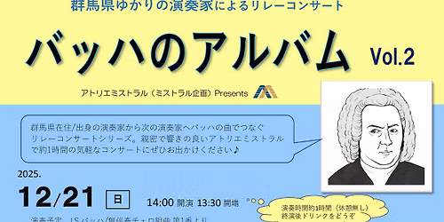 バッハのアルバム リレーコンサート at アトリエミストラル Vol.1