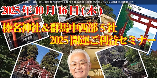 占い師・御師 秋山勉登務先生と行く最強!榛名神社&群馬中西部5社2025開運ご利益セミナー