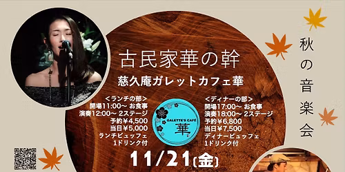 ★11/21(金)昼夜2部制 つくば「慈久庵ガレットカフェ華」秋の音楽会