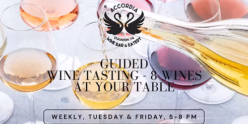 Weekly Guided Global Tasting at Accordia, Tuesdays & Fridays • 8 International Wines • 5-8 PM