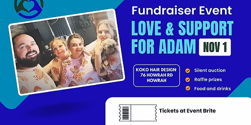 Follow Alex HarrisonAdam is currently facing the toughest battle of his life after being diagnosed with Stage IV renal cell carcinoma. Despite everything, he continues to fight with incredible strength and resilience.As a family, we are doing everything we can to support him, but we can’t do it alone.We are organising a fundraising event to help cover the overwhelming medical costs Adam is facing. Treatments, travel to and from Hobart and ongoing care have placed a significant financial strain on Adam and his young family.Our goal is to raise funds to help ease this burden and give him the best possible chance to keep fighting.This is where we are hoping for your support at our fundraiser event.We believe in the power of community and right now, we need ours more than ever.If you have any questions, please don’t hesitate to contact me directly at 0487 955 835 or ka_harrison@bigpond.comWith heartfelt thanks,Alex Harrison(On behalf of Adam and our family)P: 0487 955 835E: ka_harrison@bigpond.comhttps://www.gofundme.com/manage/love-and-support-for-adam