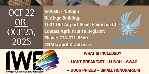 Indigenous Women Entrepreneur Workshop September 26 & 27th