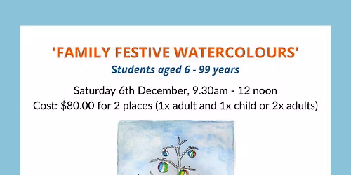 FAMILY WORKSHOP – KIWI CHRISTMAS WATERCOLOUR (6 – 99yrs)