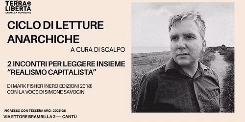 CICLO DI LETTURE ANARCHICHE A CURA DI SCALPO LEGGIAMO INSIEME “REALISMO CAPITALISTA” DI MARK FISHER
