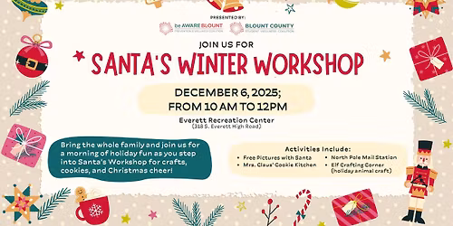 Santa's Winter Workshop – by Be Aware Blount & Blount County Student Wellness Coalition