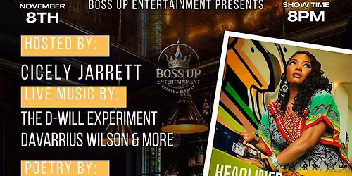 Follow BOSS UP ENTERTAINMENTBoss Up ENT, led by Simone Clark, is dedicated to curating unforgettable experiences that blend music, poetry, culture, and community. From spoken word lounges to high-energy parties and Cultural -inspired celebrations, every event is crafted to inspire, entertain, and elevate every vibe & create a lasting experience.