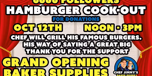 Hamburger Cook-Out for Donations for customer appreciation and GRAND OPENING BAKER SUPPLY ADDITION