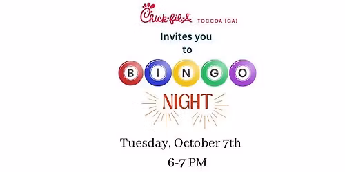 October BINGO Night at Chick-fil-A Toccoa