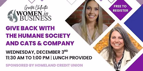 Women in Business Luncheon - Give Back with the Humane Society and Cats & Company