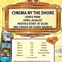 Follow Cinema By The ShoreCinema By The Shore is a FREE community event on the Mississippi Gulf Coast where families can enjoy movies outside every 3rd Friday of the month. Movies are shown in Gulfport's Jones Park. Bring your own snacks & blanket!
