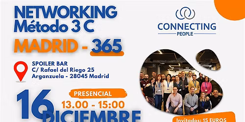 Follow Connecting PeopleNetworking de empresarios trabajando en equipo con método híbrido (online y presencial) ⭕ Comprometidos con ayudar a empresarios, para que utilizando el networking y un método de trabajo puedan llegar a nuevos clientes y nuevas oportunidades profesionales. Apoyamos nuestro trabajo en tres valores fundamentales: Ética, respeto y mejora continua Nuestros encuentros online pueden ser: De un grupo estable y formado: En ese caso cuenta entre 18 y 22 miembros, cada uno de una profesión o sector con un esquema de trabajo rígido para obtener resultados. Tendrás las posibilidad de presentar tu proyecto delante del grupo de empresarios . De un grupo en formación: En ese caso los participantes presentarán su proyecto y conocerán nuestro método. El formato es más libre.