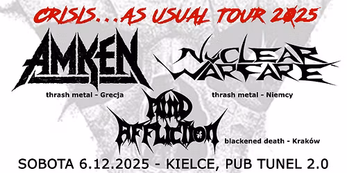 Koncert Amken (thrash, Grecja), Nuclear Warfare (thrash, Niemcy) + Mind Affliction - Kielce, Tunel