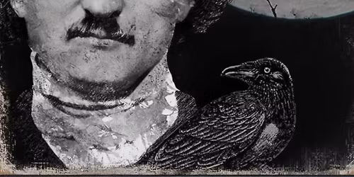 Spooky Edgar Allan Poe book reading by candle light.