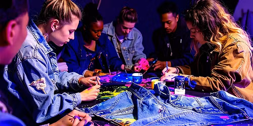 Follow Jared Ryan ShawDrip & Sip Miami offers immersive glow-in-the-dark sip-and-paint experiences on denim inside the working art studio of Miami-based artist Jared Ryan Shaw. Guests paint wearable denim using glow paints, glitter, and mixed media while sipping wine in an authentic gallery setting. This experience is perfect for date nights, birthdays, bachelorettes, and creative nights out.