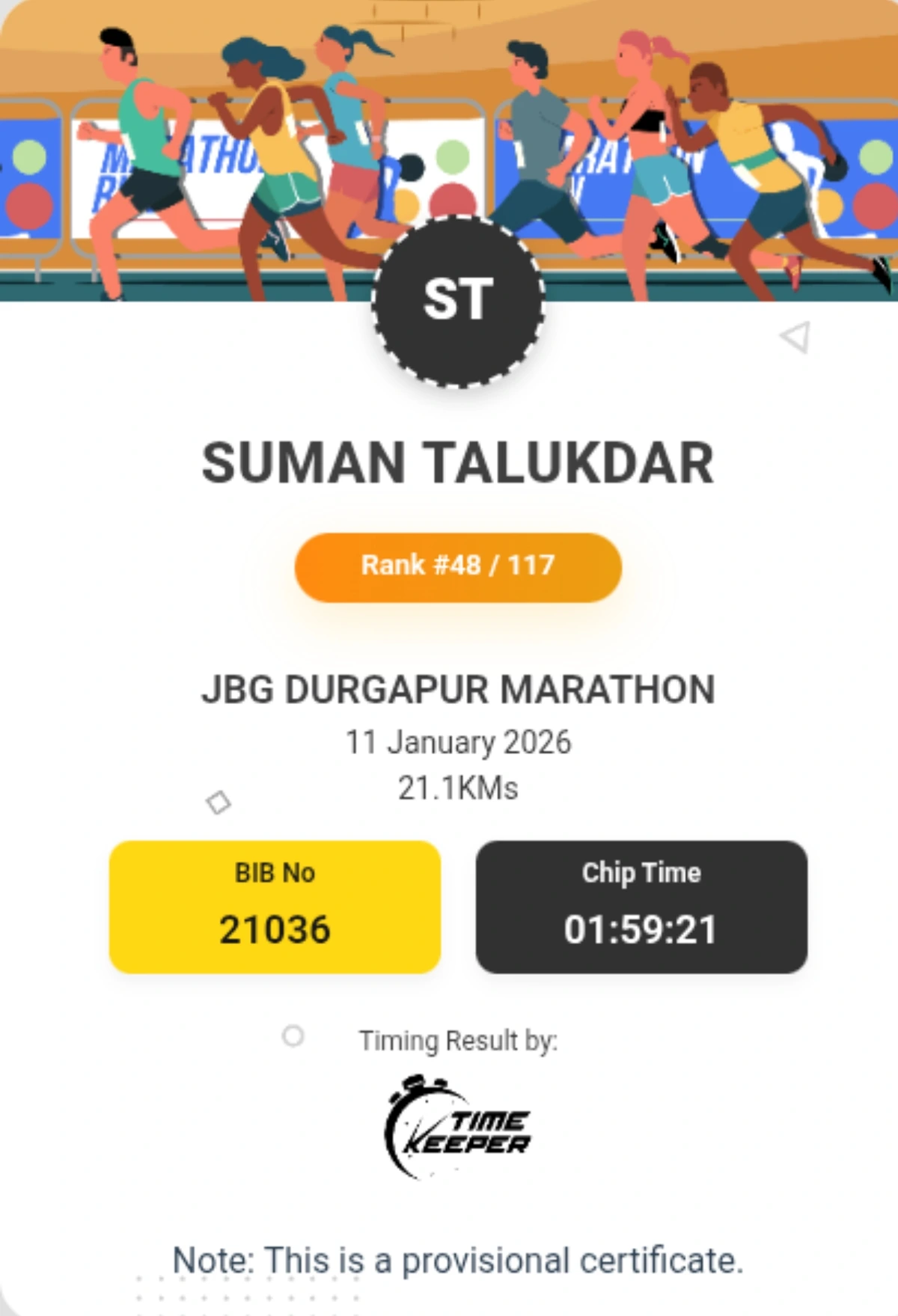 “I am from Kolkata but I wanted to start my new year with a marathon so I attend jbg durgapur Marathon 2026. I gave my parsonal best . Overall experience was superb”