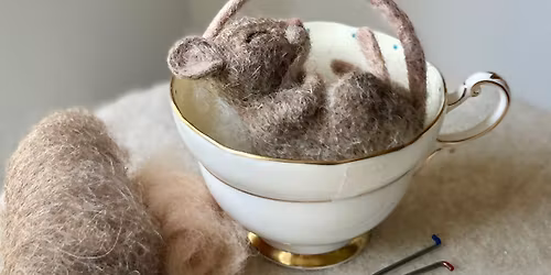 Needle Felted mouse in a tea cup workshop