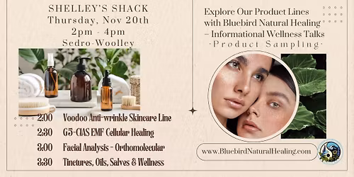 Bluebird Natural Healing Product Wellness Talks & Sampling at Shelley's Shack.