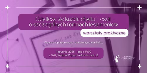 Gdy liczy się każda chwila – czyli o szczególnych formach testamentów – warsztaty praktyczne