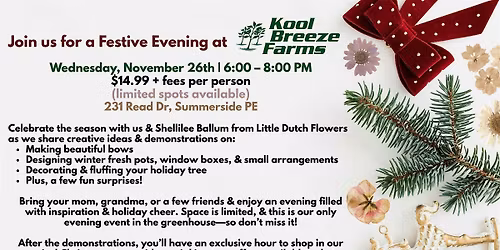 PEI's largest family owned garden centre, farm market and seasonal Christmas store. From seeds to trees, it's here at Kool Breeze.