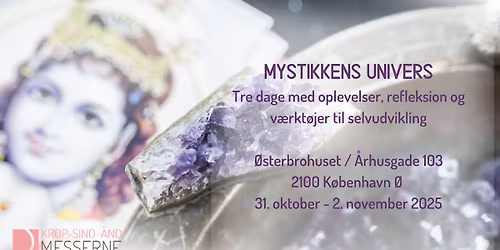 Mystikkens Univers i Østerbrohuset Kbh Ø, 31. okt - 2. nov 2025. Fredag kl. 12-18, lør/søn kl. 10-18