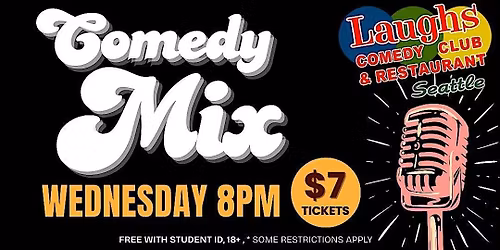 Follow Laughs Comedy ClubLaughs Comedy Club is Seattle's best comedy club! We are open Wednesday thru Saturday, with one or two shows per night. Every Wednesday is “Comedy Mix,” a $5 show where up and coming comics bring their best. Thursday' nights feature top local comedians and often drop in national headliners. Doors open at 7:00pm, and the show starts at 8:00pm. Touring headliners are featured on Friday and Saturday nights. We feature the top names in comedy as well as many comedians on the rise. We book our headliners based on one very important thing - Funny!Laughs Comedy Club has an intimate feel. It can hold up to 200 customers, and every seat has an unobstructed view of the stage. A state of the art sound system allows all of the great comedy to be heard in every corner of the room.Show prices are normally $15 or $20 with a minimum two item purchase requirement from the food and beverage menu.Head over to our website and sign up for our newsletter to receive early show announcements, giveaways, specials, and more!