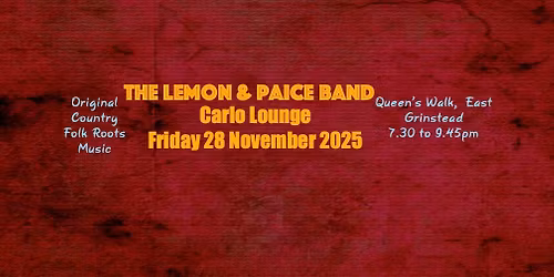 The Lemon & Paice Band play Carlo Lounge East Grinstead 28 November 2025 7.30-9.45pm