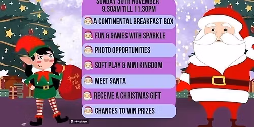 Breakfast with Sparkle the Elf and Santa.
