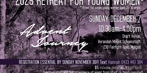 Advent Journey 2025 Retreat for Young Single Women (ages 20-35 Years)