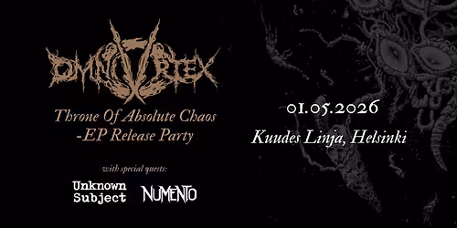 OMNIVORTEX + Unknown Subject + Numento // Kuudes Linja, Helsinki // Pe 01.05.2026