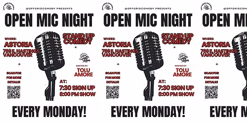 Open mic every Monday 8 pm @astoriavancouver & pop-up shows around the city of Vancouver