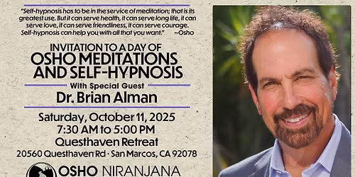 Invitation to a day of Osho meditations & Self-Hypnosis with Special Guest Dr. Brian Alman