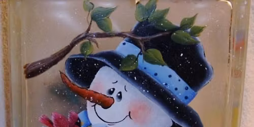 Painted light up glass block-Snowman